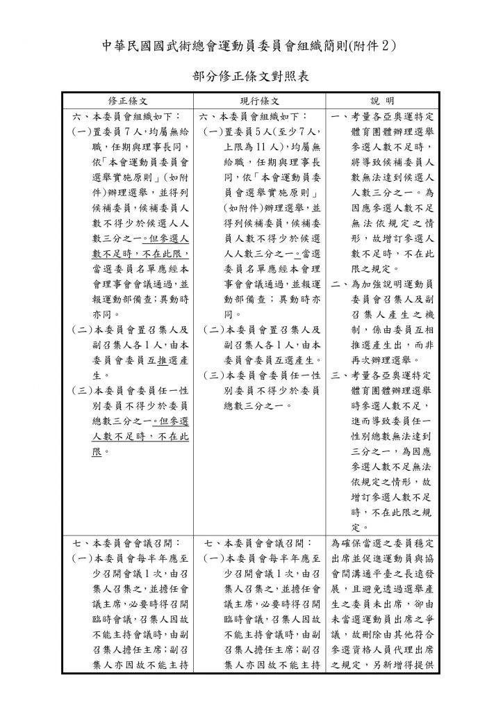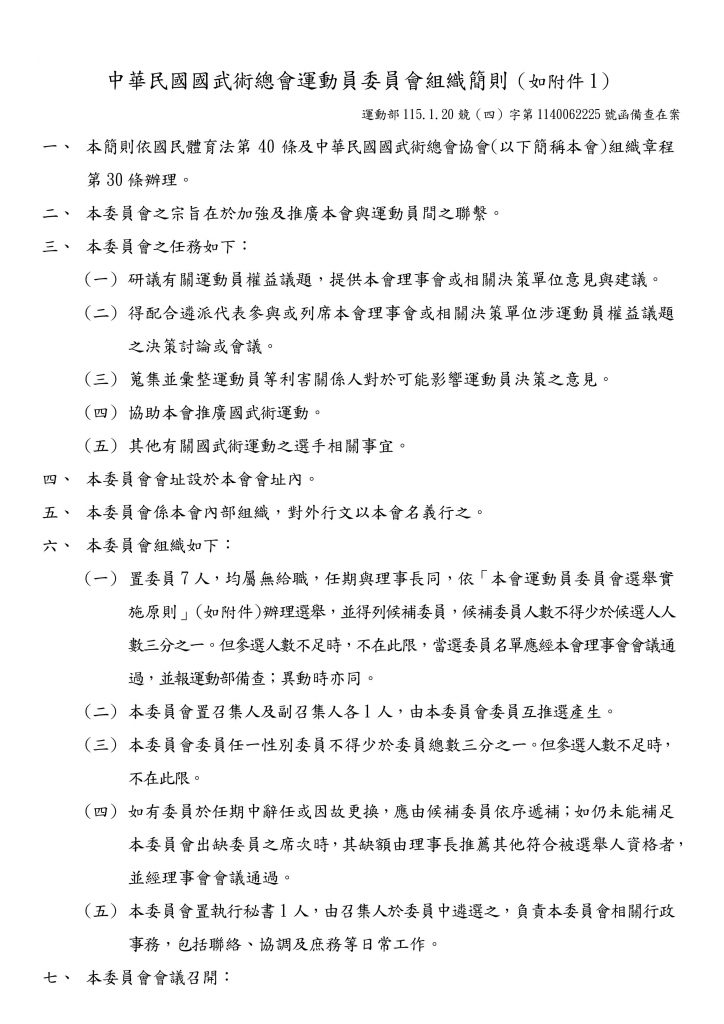 中華民國國武術總會運動員委員會組織簡則1150120修訂