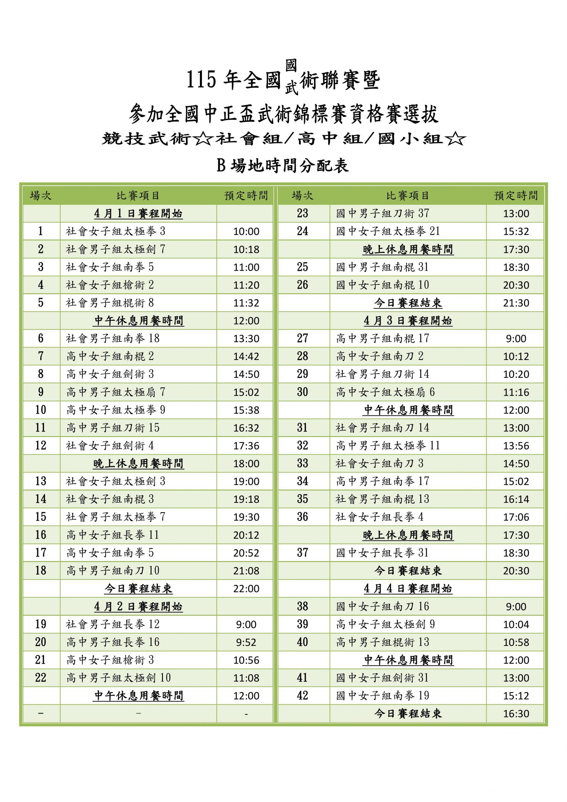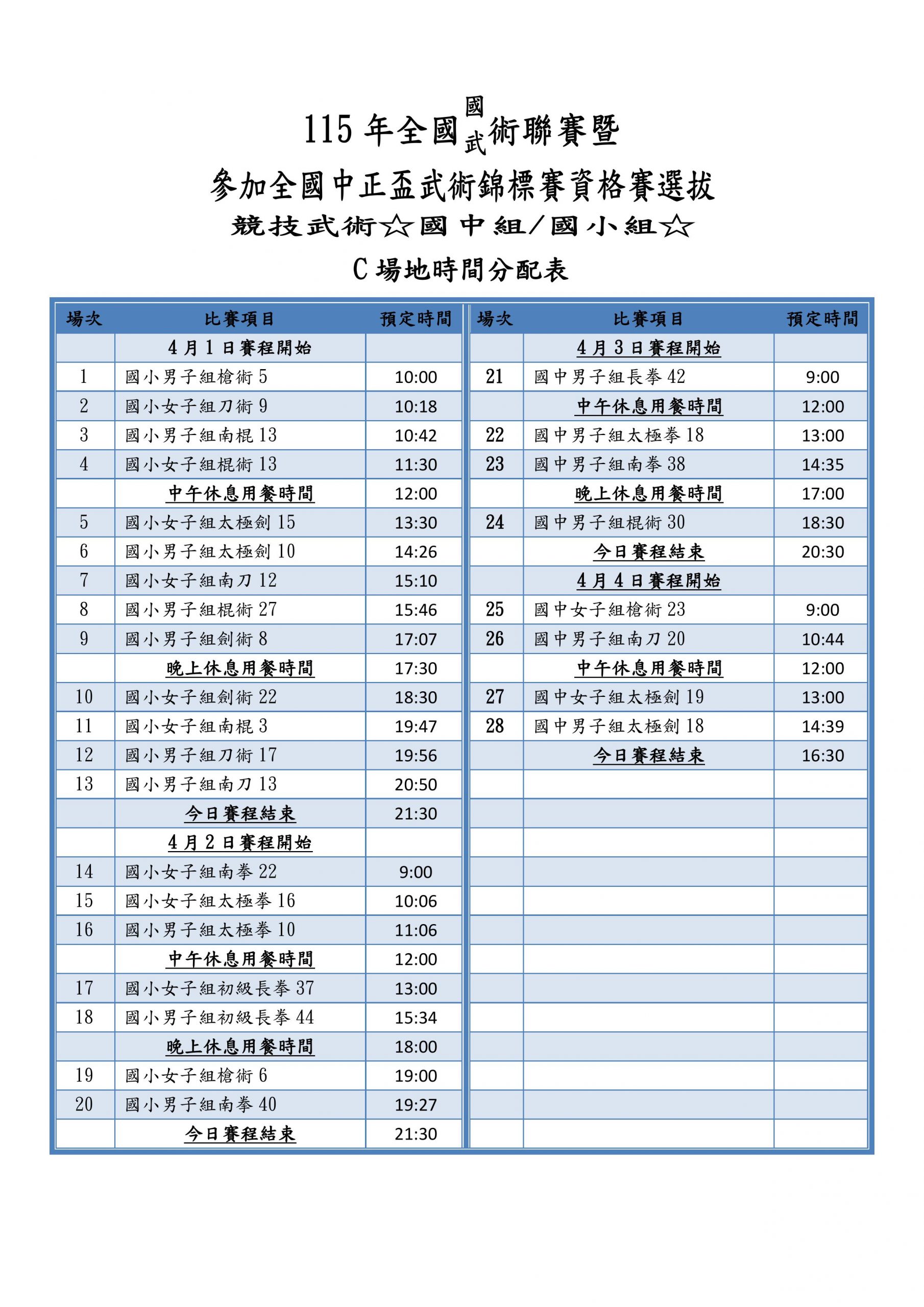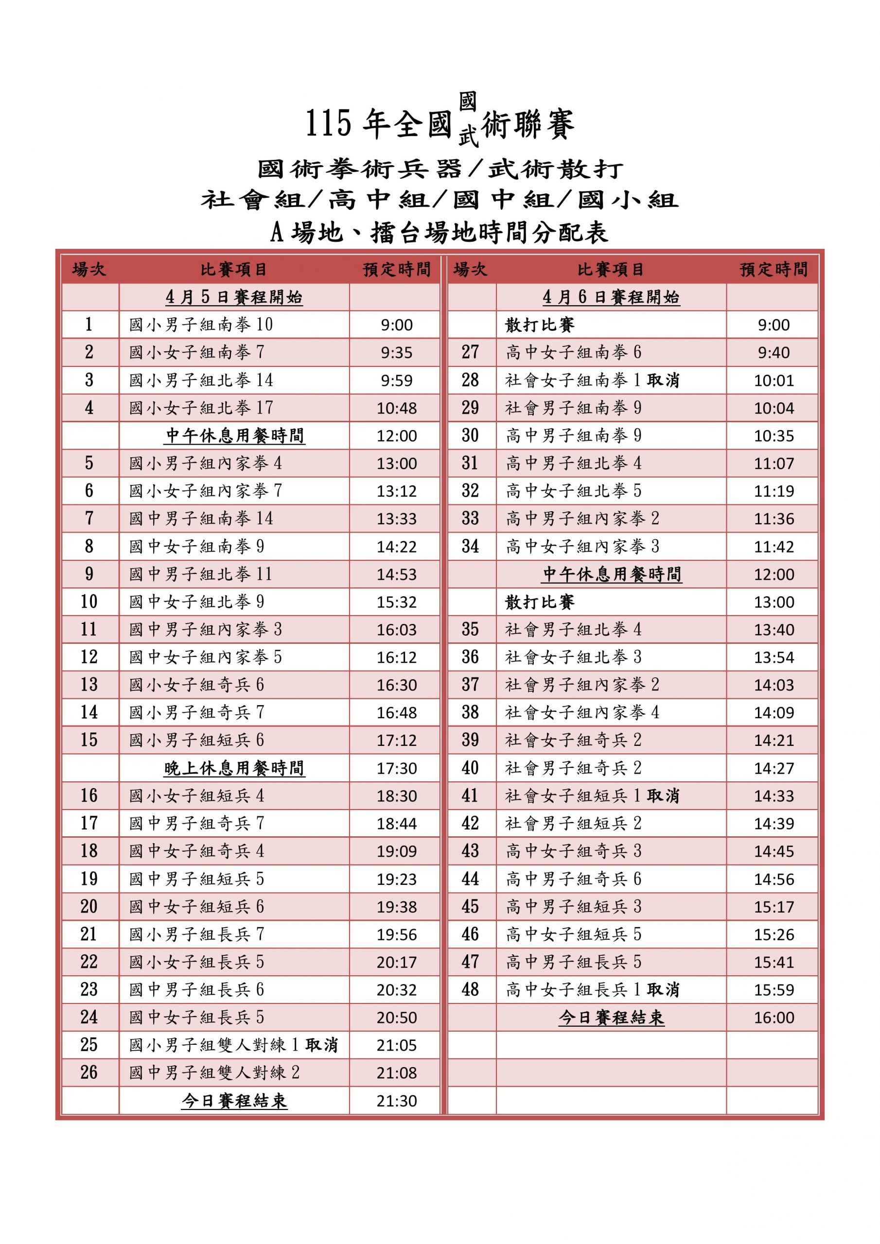 4/5為傳統國術國小、國中組及武術散手中午12點開始過磅抽籤